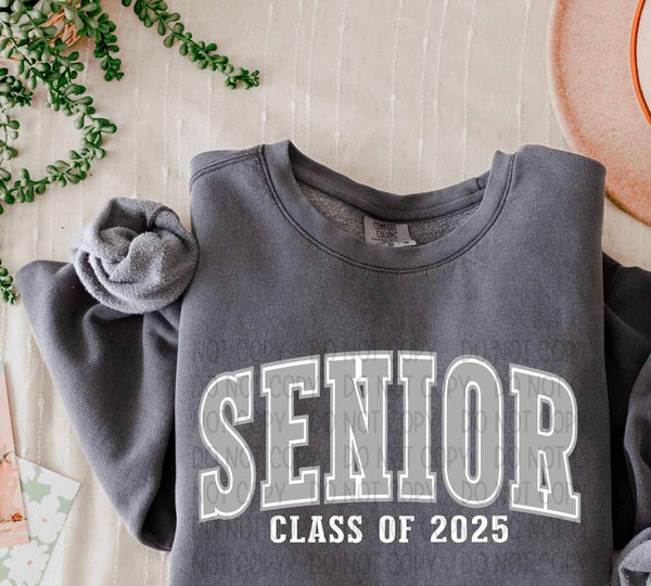 Senior class of 2025 grey varsity white outline (SW) 60297 DTF transfer