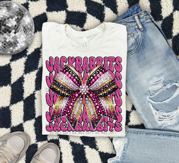 Jack Rabbits Pink Bow School Mascot 57902 DTF transfer