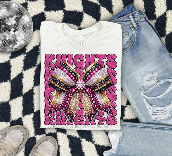Knights Pink Bow School Mascot 57904 DTF transfer