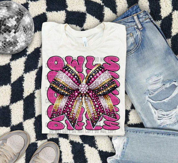 Owls Pink Bow School Mascot 57914 DTF transfer