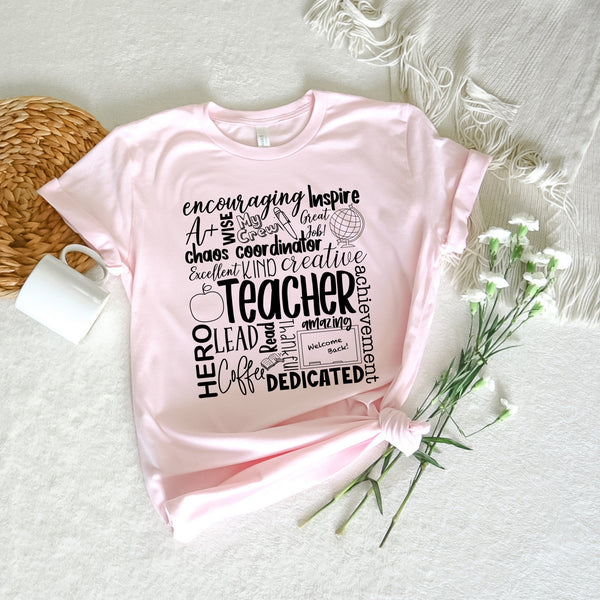 Teacher repeat pink pencil bow 49820 DTF transfer
