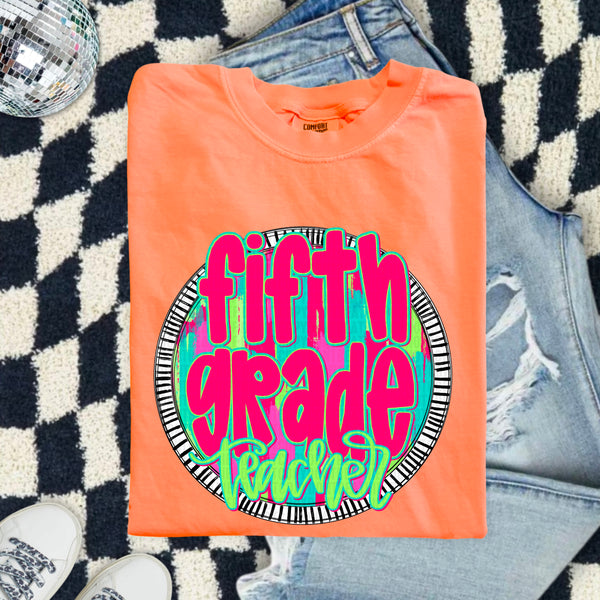 Fifth grade teacher pink font circle 103884 DTF transfer