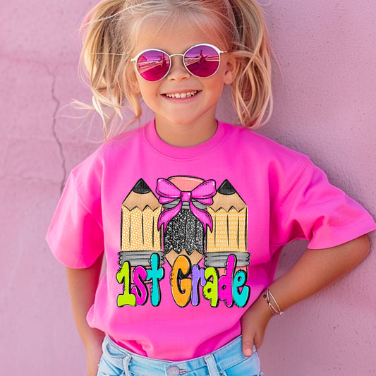 First Grade Rainbow Pencil Smiley Polka Apple 116515 DTF Transfer