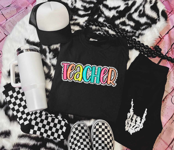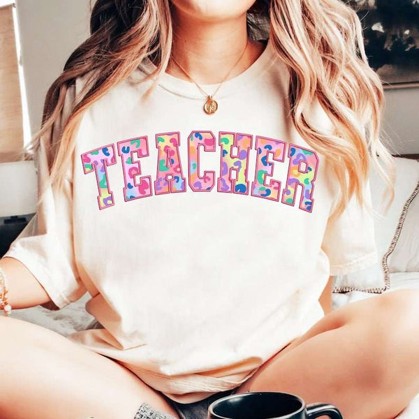Teacher colorful leopard embroidery 27566 DTF transfer