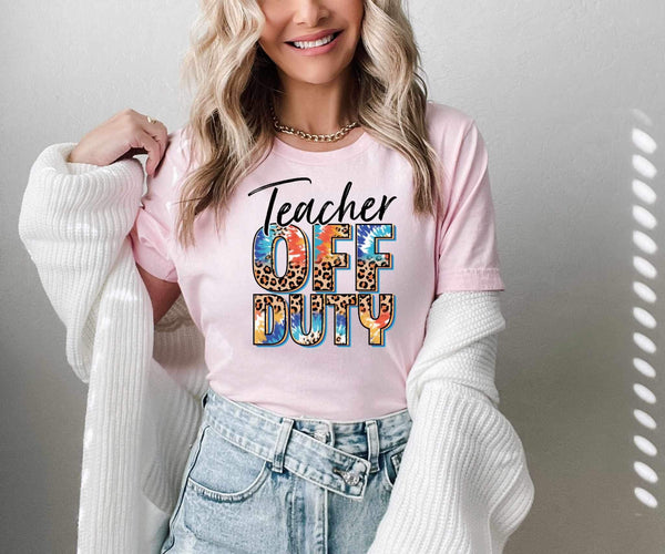 Teacher off duty orange and blue tie dye 26561 DTF transfer