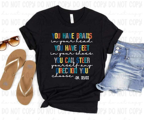 You have brains in your head you have feet in your shoes colorful and BLACK 20580 DTF transfer