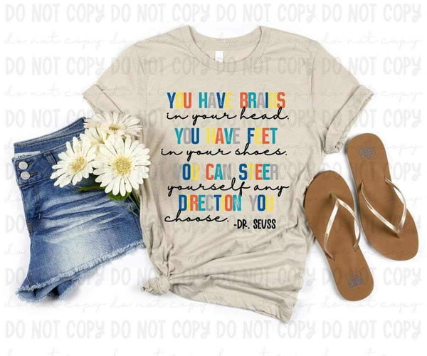 You have brains in your head you have feet in your shoes colorful and WHITE 20581 DTF transfer