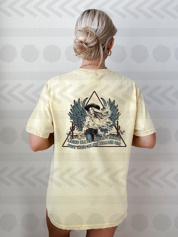 Lord have mer y baby got her blue jeans on 18727 DTF transfer