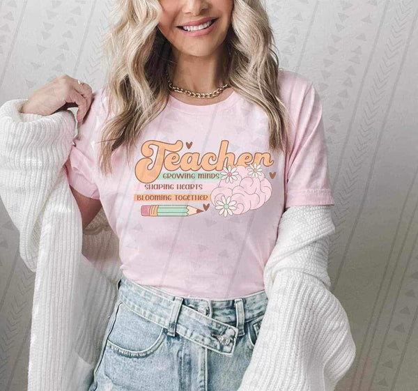 Teacher growing minds shaping hearts blooming together 19109 DTF TRANSFERL