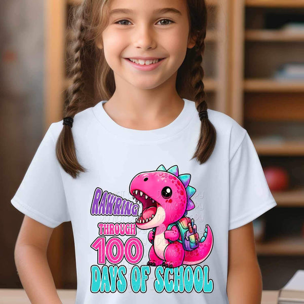 Rawring through 100 days of school pink dino 20042 DTF Transfer