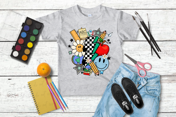 kindergarten PINK Retro school supplies 2098 DTF TRANSFER