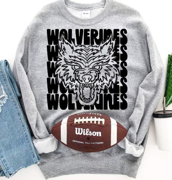 Walverines (5 stacks) stacked black mascot DTF TRANSFER