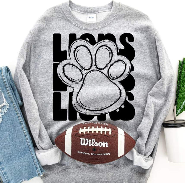 Lions PAW (3 stacks) stacked black mascot DTF TRANSFER
