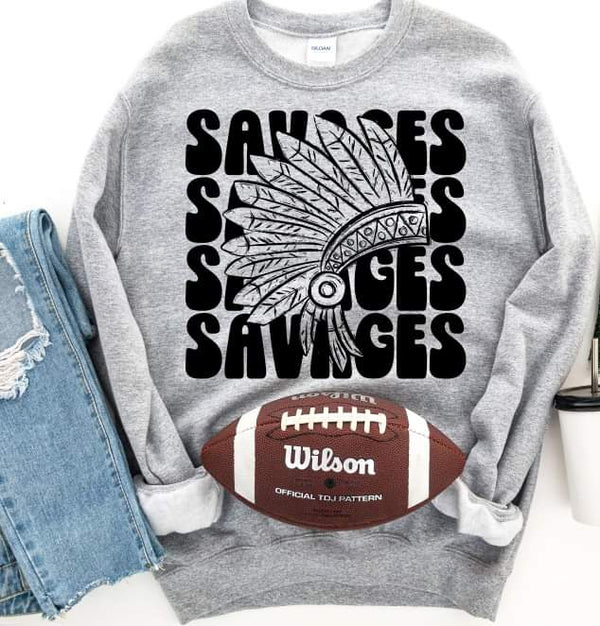 Savages (4 stacks) stacked black mascot DTF TRANSFER