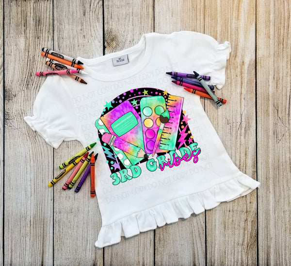 3rd grade vibes LF colors school supplies DTF TRANSFER