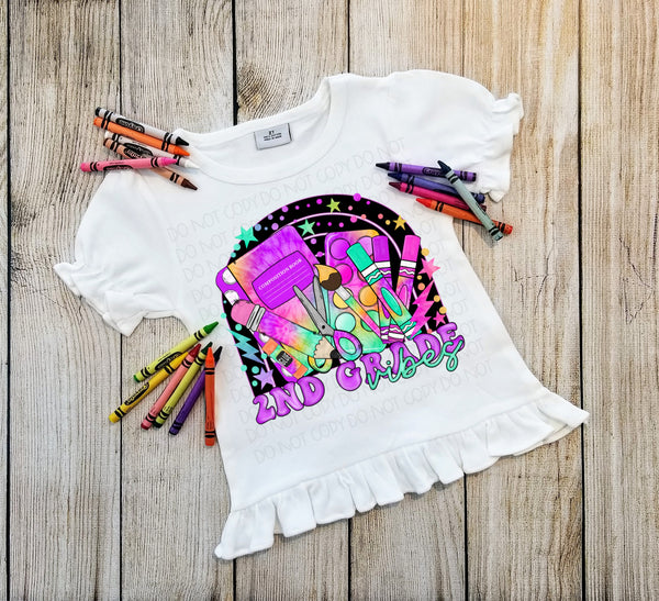 2nd grade vibes LF colors school supplies DTF TRANSFER