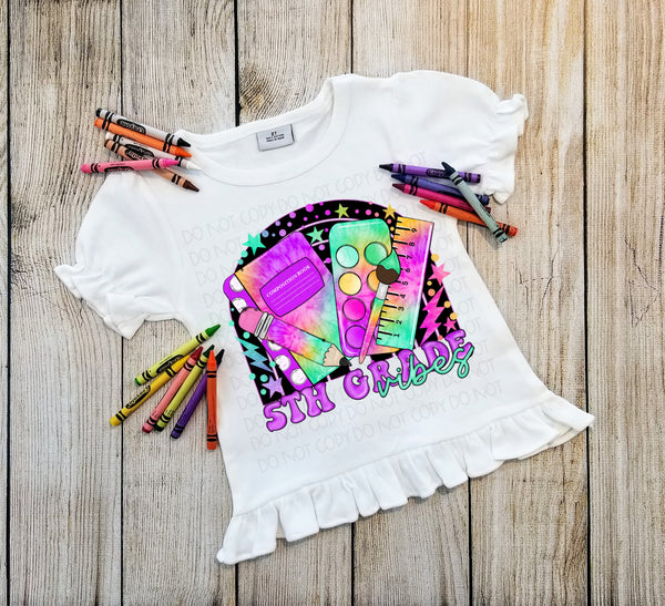 5th grade vibes LF colors school supplies DTF TRANSFER
