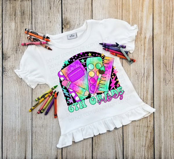 6th grade vibes LF colors school supplies DTF TRANSFER