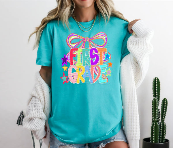 First grade colorful with bow 107474 DTF transfer