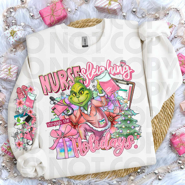 Nurse Sleighing through the holidays front only (SSD) 114459 DTF transfer