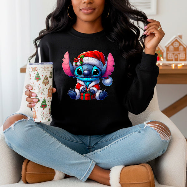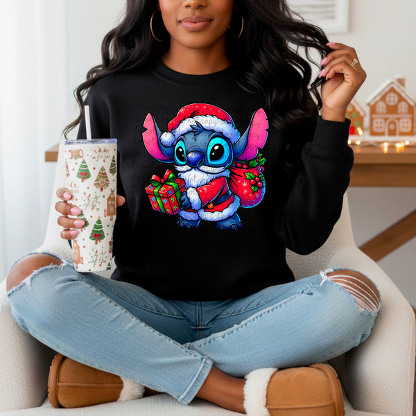 Santa Christmas Alien holding Santa bag and present 117487 DTF transfer