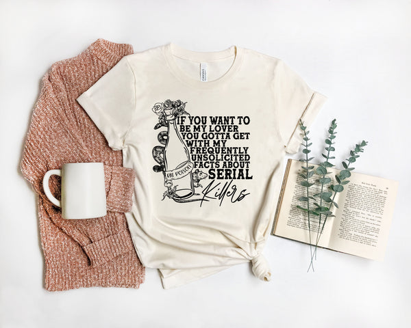 If you want to be my lover you gotta get with my frequently unsolicited facts about serial killers BLACK screen print transfer