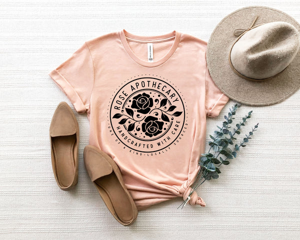 Rose Apothecary handcrafted with care BLACK screen print transfer