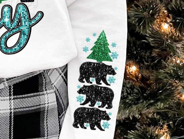 Stay cozy (sequin with bear and buffalo plaid letters) SLEEVE ONLY 11338 DTF TRANSFER