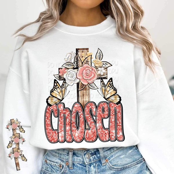 Cross with flowers and butterflies SLEEVE 17195 DTF TRANSFER