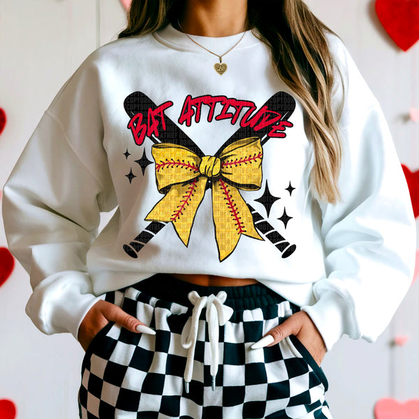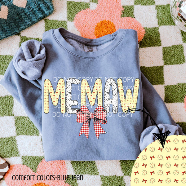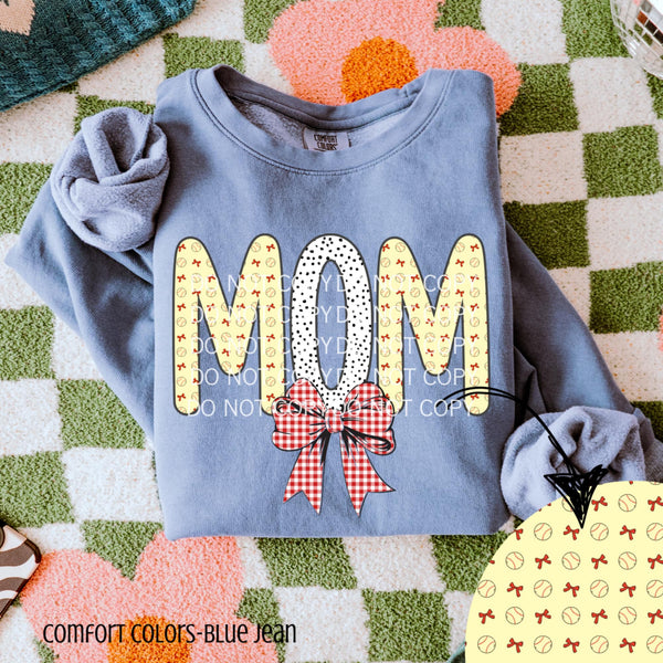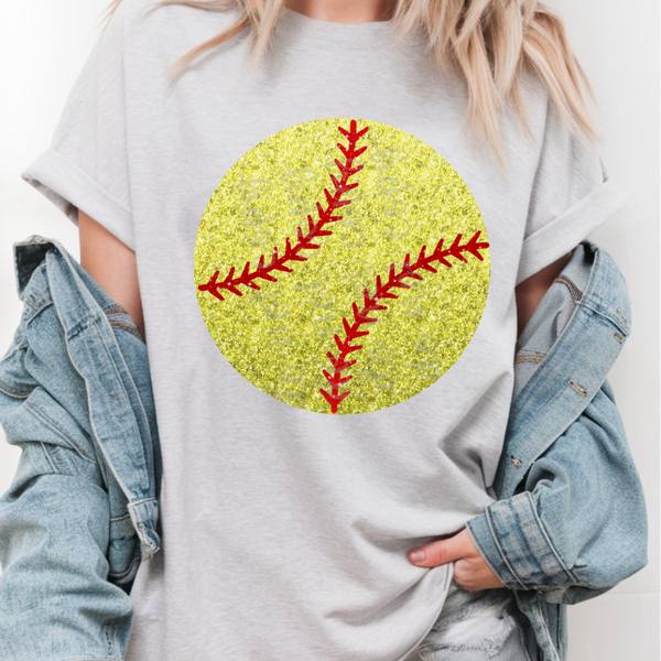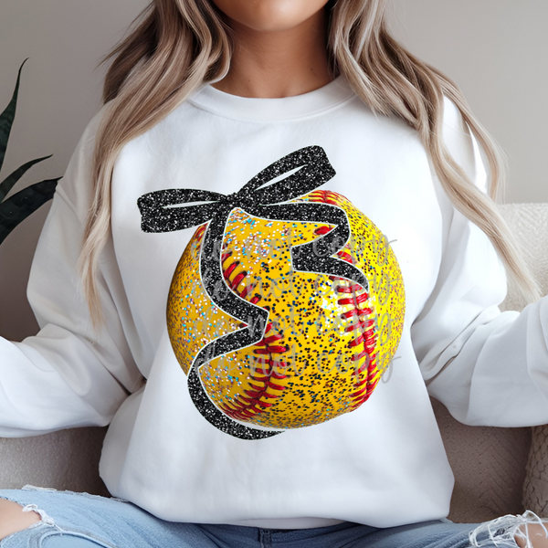 Glitter Faux Softball Red Bow (Parker) DTF Transfer