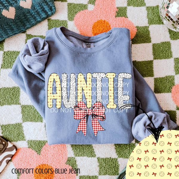 Auntie stacked with softball bow (Caplinger) 87505 DTF transfer