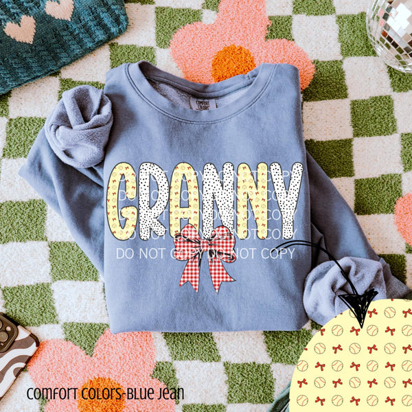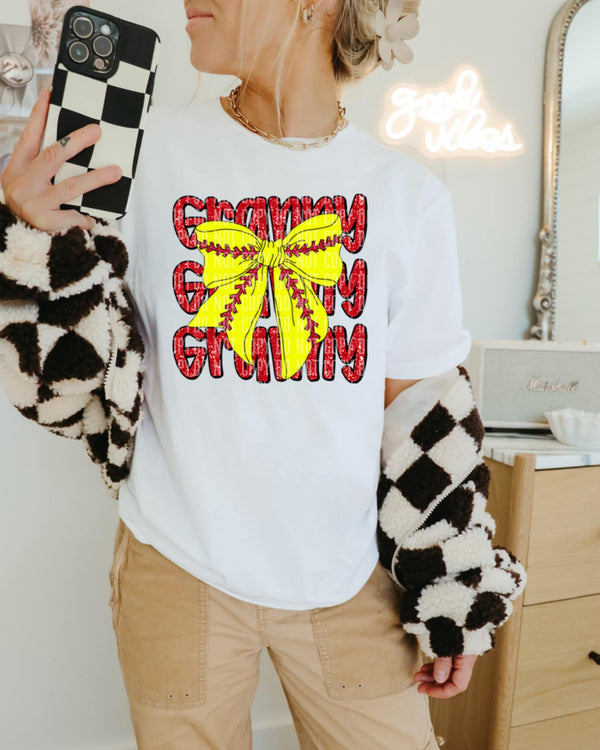 Granny stacked with softball bow (Caplinger) 87504 DTF transfer