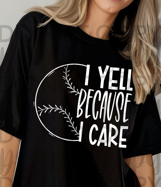 I Yell Because I Care BASEBALL/SOFTBALL WHITE (Starlight) DTF transfer