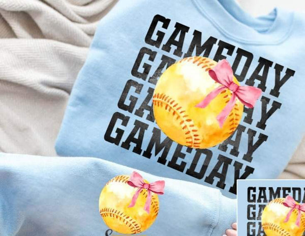 Game day stacked softball with bow FRONT 25155 DTF transfer