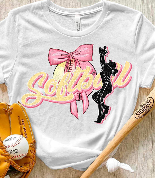 Softball with SMALL bow 25138 DTF transfer
