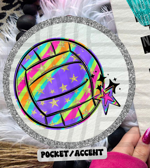 Volleyball - Colorful Stripe With Stars And Checker POCKET PRINT 108267 DTF transfer