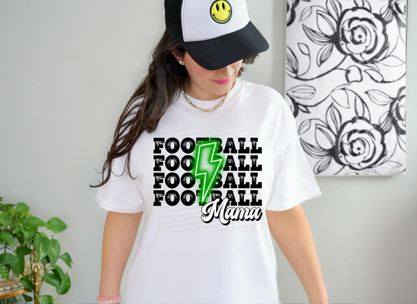 Football Mama Stacked Green Lightning Bolt 116401 DTF Transfer