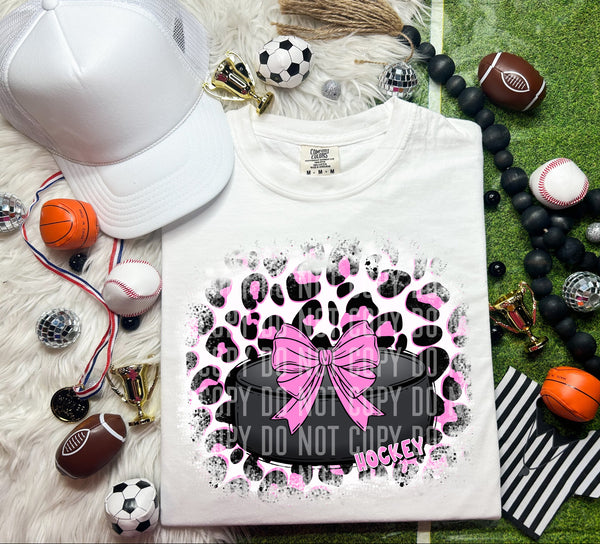 Hockey Puck Leopard Background Pink (Caplinger) DTF transfer