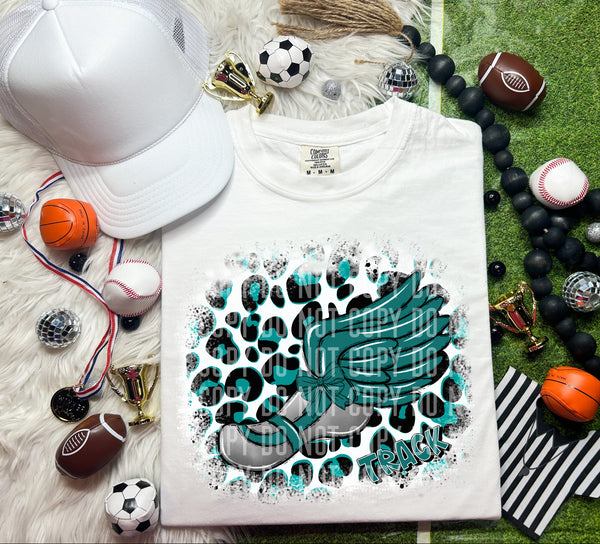 Track Shoe Leopard Background turquoise (Caplinger) DTF transfer