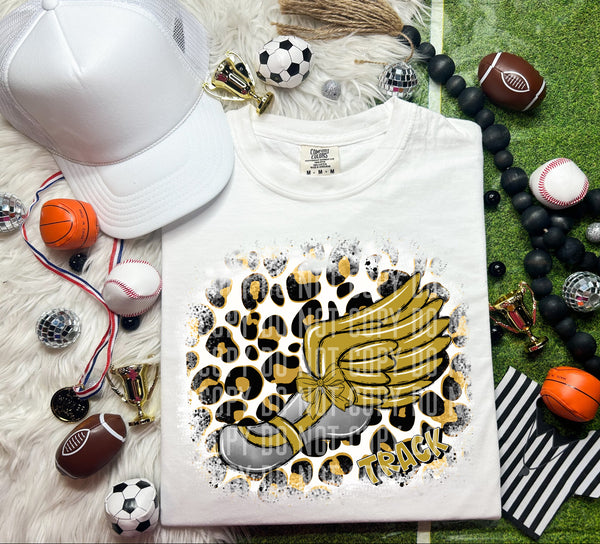 Track Shoe Leopard Background Gold (Caplinger) DTF transfer