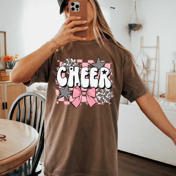 Cheer pink bow and pom poms (scarlow) DTF transfer