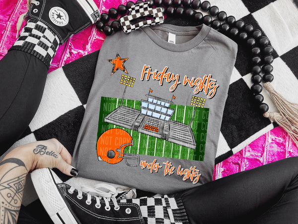 Friday nights under the lights football stadium ORANGE (Caplinger) DTF transfer