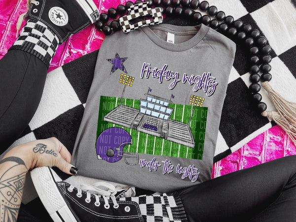 Friday nights under the lights football stadium PURPLE (Caplinger) DTF transfer
