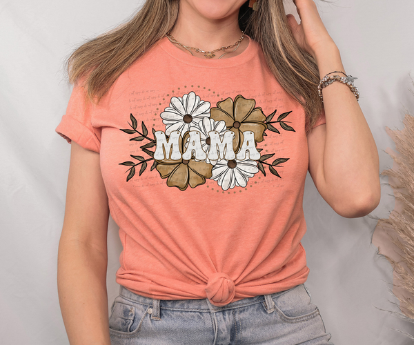 Mama Brown White Flowers Filled 86166 DTF Transfer