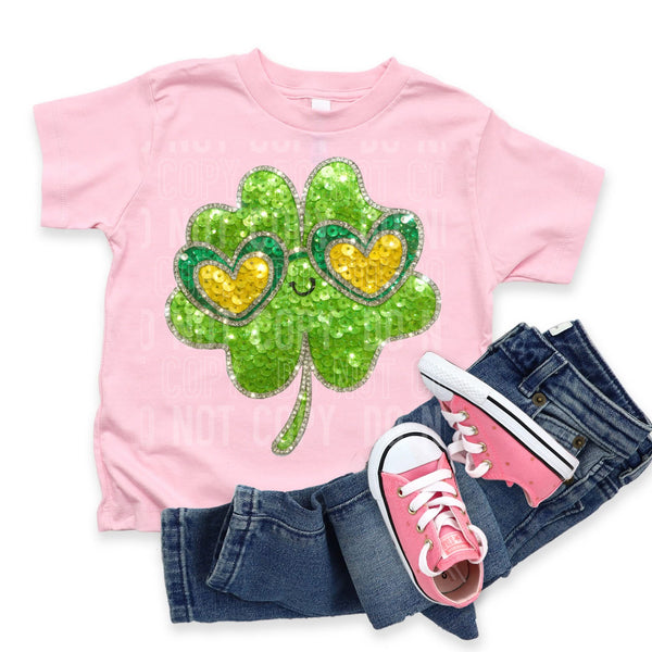 Faux sequin 4 leaf clover with heart sunglasses (SBB) DTF transfer