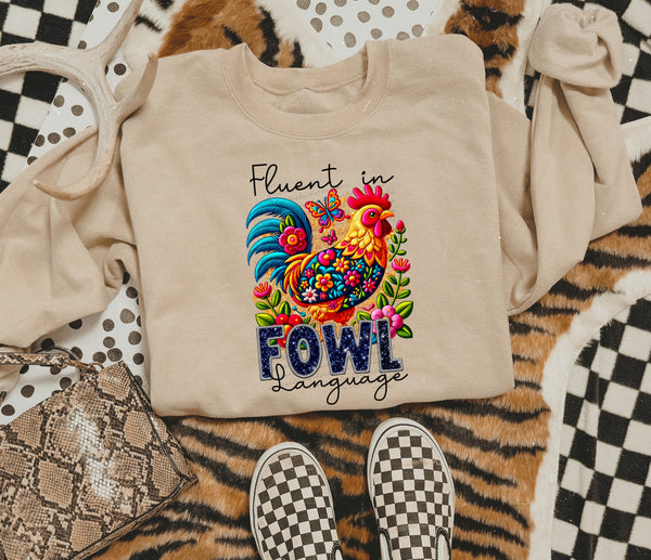 Fluent in fowl language SEQUIN 22497 DTF transfer