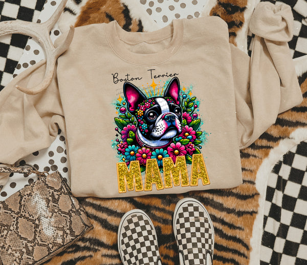 Boston terrier black and white mama SEQUIN 22495 DTF transfer