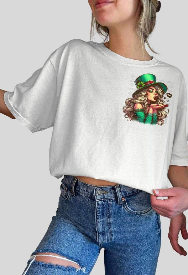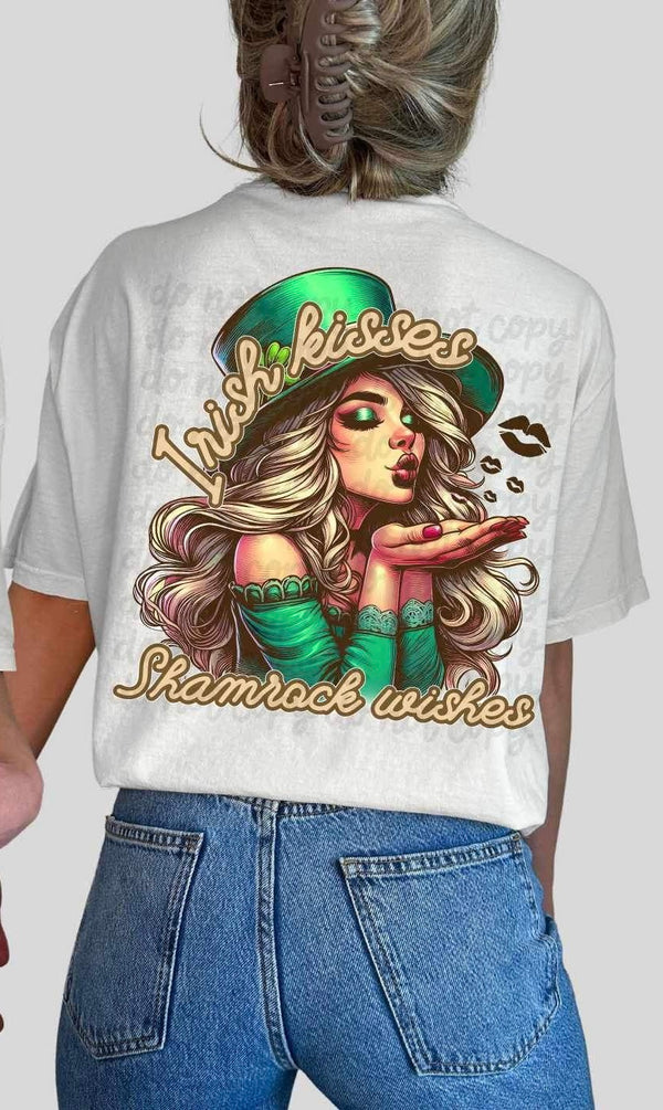 Irish kisses shamrock wishes girl in green outfit 19475 DTF Transfer