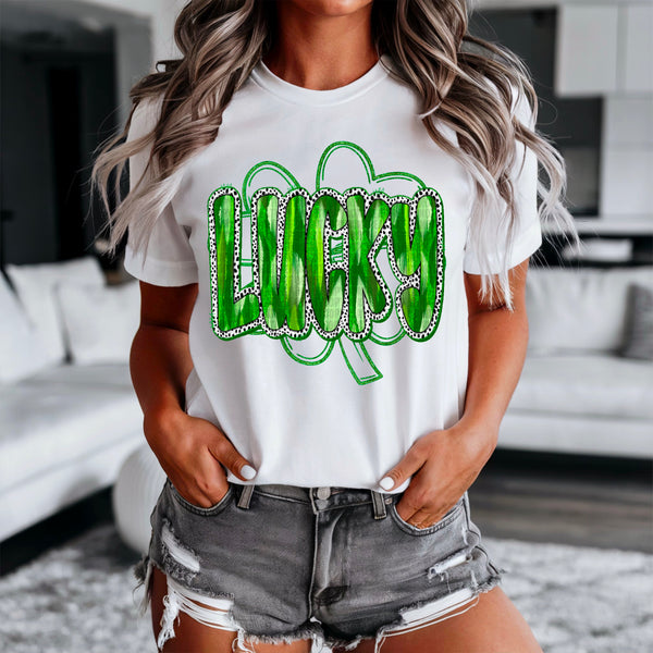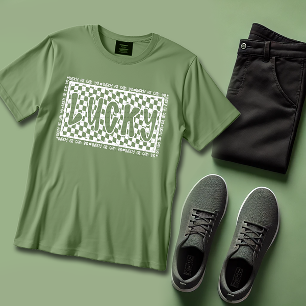 Lucky As Can Be Checkered Background White 86705 DTF Transfer