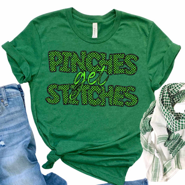 Pinches get stitches cursive green checkered (CITY) 85118 DTF transfer